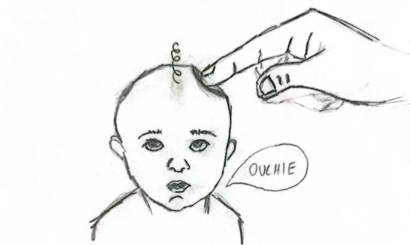 Pushing in the soft spots on babies’ heads
